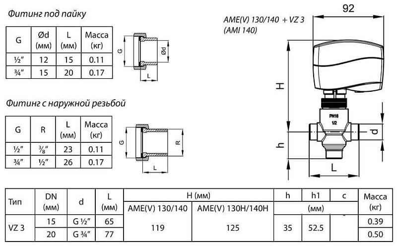Могут работать в сочетании с электрическими приводами AMV(Е) 130, 140