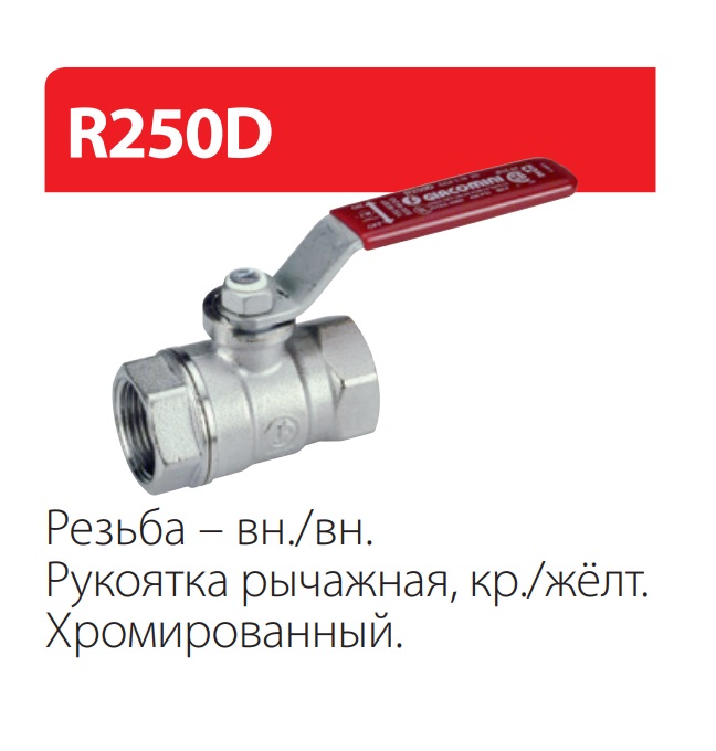 Кран шаровой Giacomini R250D, стандартный проход, 1 1/2", ВВ, ручка-рычаг красный, латунь, хромированный. Латунные шаровые и вентильные краны Giacomini (Джакомини) могут применяться для отопления, водоснабжения и газа. Выполняют функцию запорно-регулирующей арматуры для транспортировки различных жидкостей по трубам и магистралям. Шаровые краны (запорная арматура) Giacomini (Джакомини) R250X007
