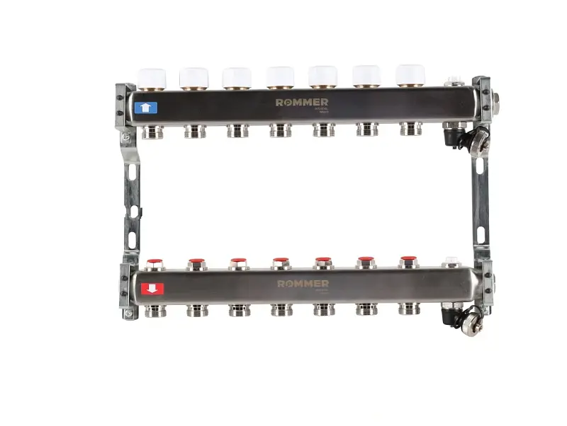 ROMMER Коллектор из нержавеющей стали без расходомеров, с клапаном вып. воздуха и сливом 7 вых.