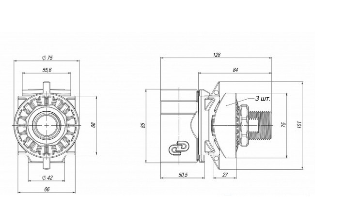 Адаптер представляет собой устройство из двух частей (ползун и основание), одна из которых (ползун) используются для соединения с напорной трубой от насоса, а вторая (основание) предназначена для