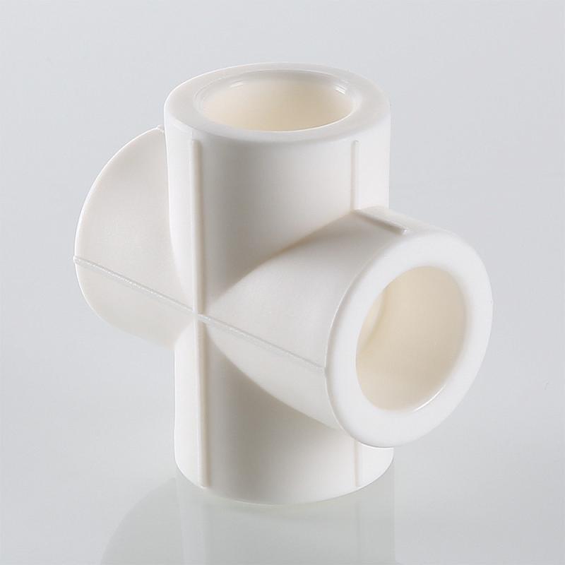 (VTp.741.0) Фитинг для соединения четырех полипропиленовых труб равного диаметра (крестовина). Монтаж производится методом раструбной сварки.